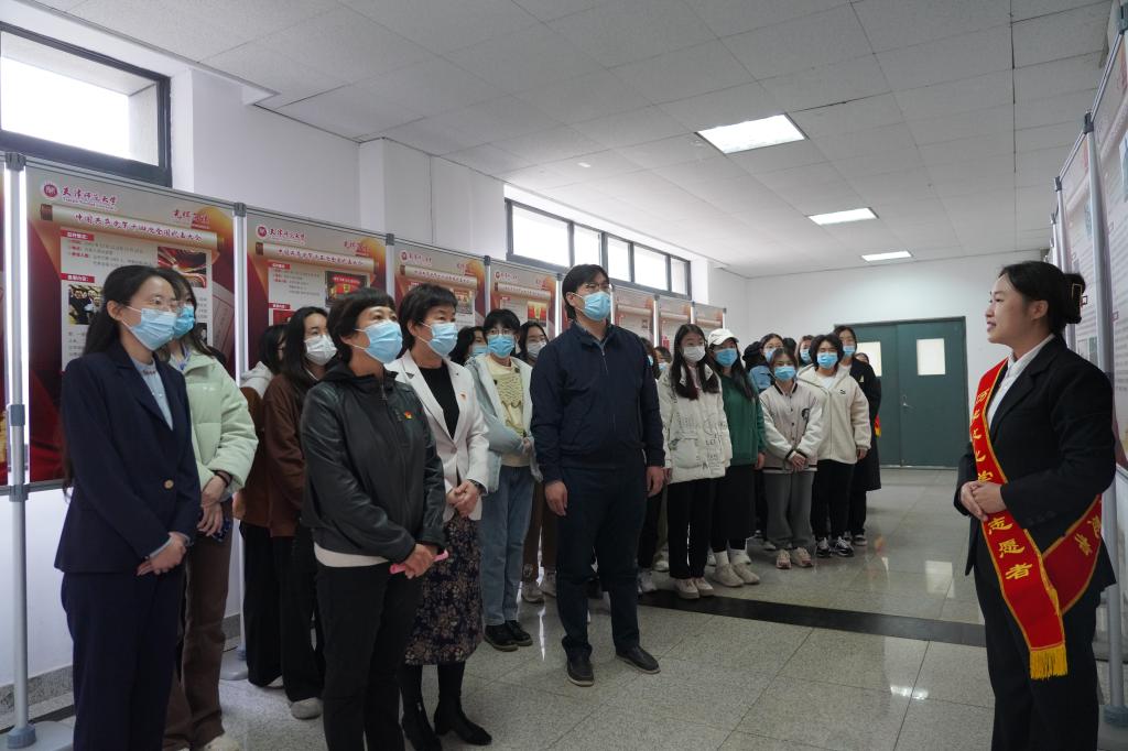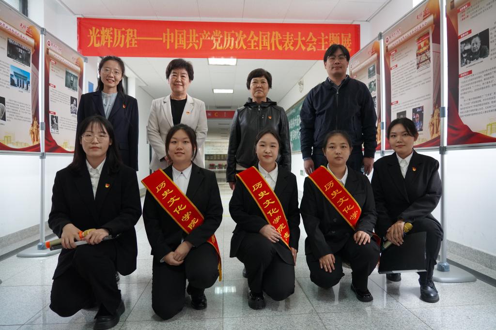 揭幕式后,“光辉历程——中国共产党历次全国代表大会”主题展接待了由参会的领导嘉宾、学生代表组成的首批参观来宾,求是学社三位学生讲解员重点为大家讲述了历史上几届党的全国代表大会,带领大家以党的历届代表大会为主题,以党的历史发展脉络为主线,共同回顾我们党不断自我革命、进步的光辉历程。参展教师纷纷表示,通过对中国共产党历届全国代表大会的现场学习,进一步坚定了立德树人的初心和使命,也从中汲取了精神动力,一定要通过不断锻造专业技能,引领学生成长,完成为党育才、为国育才的任务。