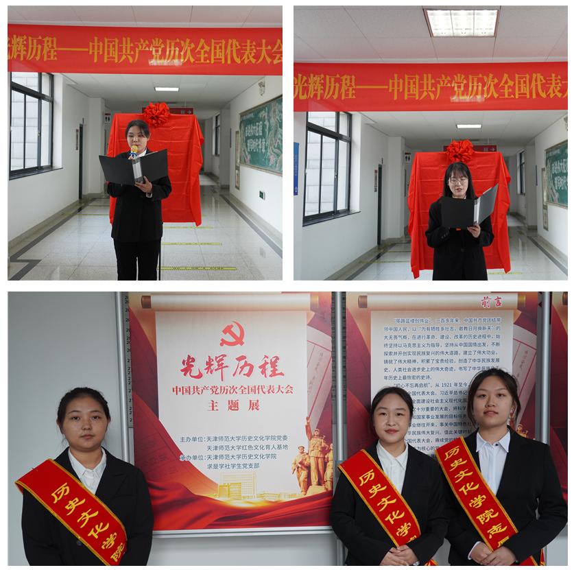 立足百年新起点,历史青年在行动。“光辉历程——中国共产党历次全国代表大会主题展”以回望党的光辉历史为出发点,以赓续党的红色血脉为落脚点,通过发挥历史专业特色,了解党的历次代表大会之脉络与内涵,更加深入地学习贯彻党的二十大精神,响应党的二十大号召,牢记习近平总书记对青年的嘱托,听党话、跟党走,怀抱梦想又脚踏实地,敢想敢为又善作善成,立志做有理想、有担当、能吃苦、肯奋斗的新时代好青年,让青春在全面建设社会主义现代化国家的火热实践中绽放绚丽之花。