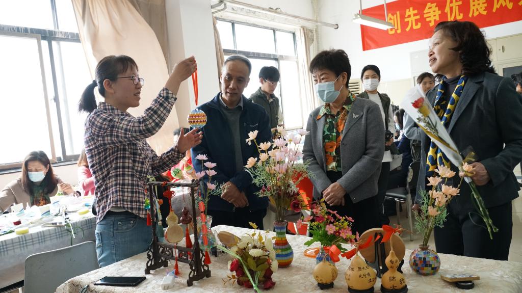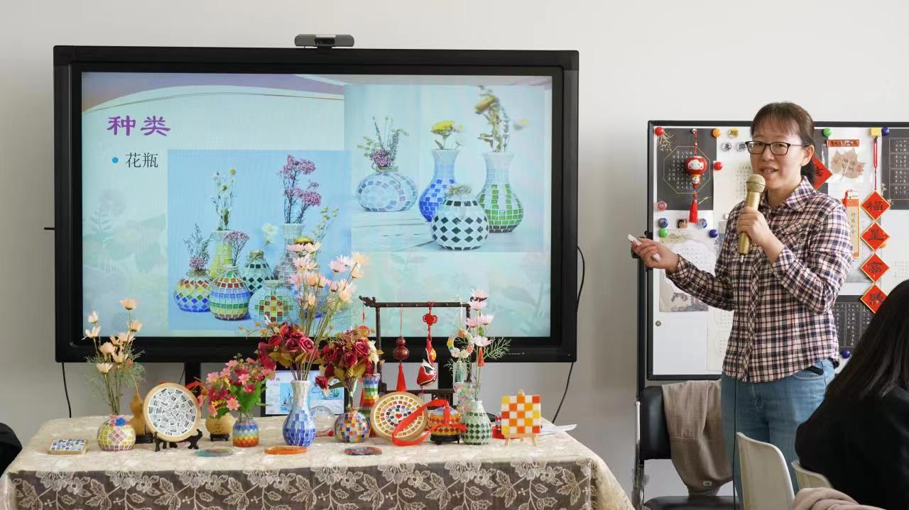 活动现场,beat365官方网站党委书记刘殿芬代表学院党委致辞,她向参加此次活动的各位女同胞致以节日的祝贺和问候。活动期间,市教育工会副主席张宇现场观摩了老师们的手工制作,与老师们交谈,分享参加活动的感受,对此次活动的举办给予充分肯定。beat365官方网站张方老师作为指导教师现场演示指导,老师们认真投入,亲手体验手工彩片(马赛克)花瓶制作。大家充分发挥艺术想象和创造性思维,打破了固有规则,自由拼贴,搭配颜色,排列组合,一份份手工作品不断被呈现出来,一件件作品产生的意想不到的惊艳效果为活动现场营造了浓郁的艺术氛围。