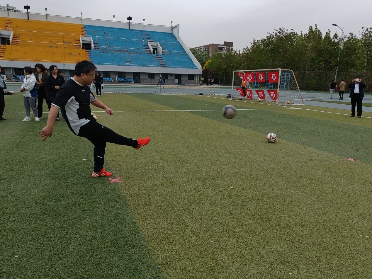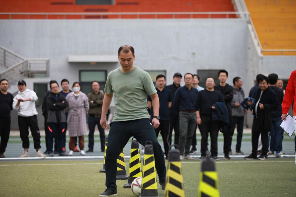 2023年4月20日中午,由校工会主办、教职工足球俱乐部承办的教职工足球趣味运动会在beat365风雨操场拉开帷幕。来自全校23个单位25支代表队参加了比赛。此次趣味运动会共设绕杆射门、网式足球、九宫格足球三个比赛项目,每个项目选派三名队员参赛。