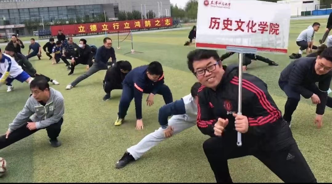 经过充分的赛前热身,两院参赛教师个个精神饱满、热情澎湃,学院党委刘殿芬书记来到比赛现场,和两院来观看赛事的老师们组成的拉拉队一起为队员们站脚助威,加油鼓劲;学院工会也为队员们提供了良好的后勤服务保障。几位神射手的精彩表现和队友的“献身精神”,迎来大家阵阵掌声。最终历史一队不负众望,赢得“九宫格足球赛”亚军,为此次趣味运动会画上圆满句号。