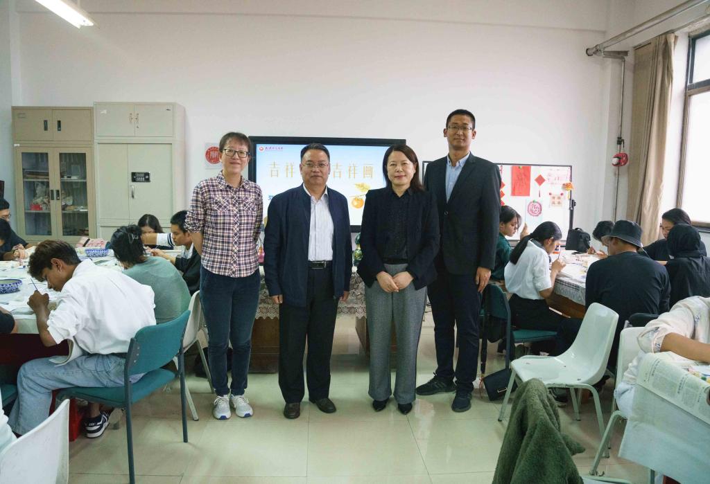 beat365教学副院长王玉亮教授与国际教育交流学院教学副院长高航教授也来到beat365书画实验室,观看学生们手工绘画,并对课程体验提出进一步发展设想。