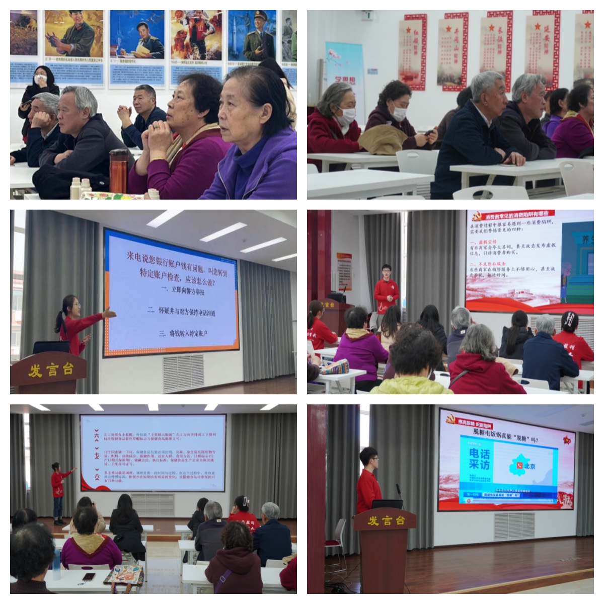 支部党员首先从识别陷阱、避开陷阱、消费维权方式三个角度进行宣讲,对老年人在消费中可能遭遇的问题进行了梳理,同时为老年人提供了解决方式,有效地帮助老年人认识到日常生活中存在的消费问题。随后,支部党员以“诈骗知多少”为题,用伪保健品和电信诈骗为例,详细阐述了二者的特点和鉴别方法,进一步增强了老年人的防范意识,提高了老年人对多种诈骗形式的分辨和识别能力。最后,支部全体党员与老年人以问答题的形式进行了互动游戏,巩固了老年人的学习成果,老人们纷纷举手发言,热情参与到互动之中,宣讲活动在热烈的掌声中结束。