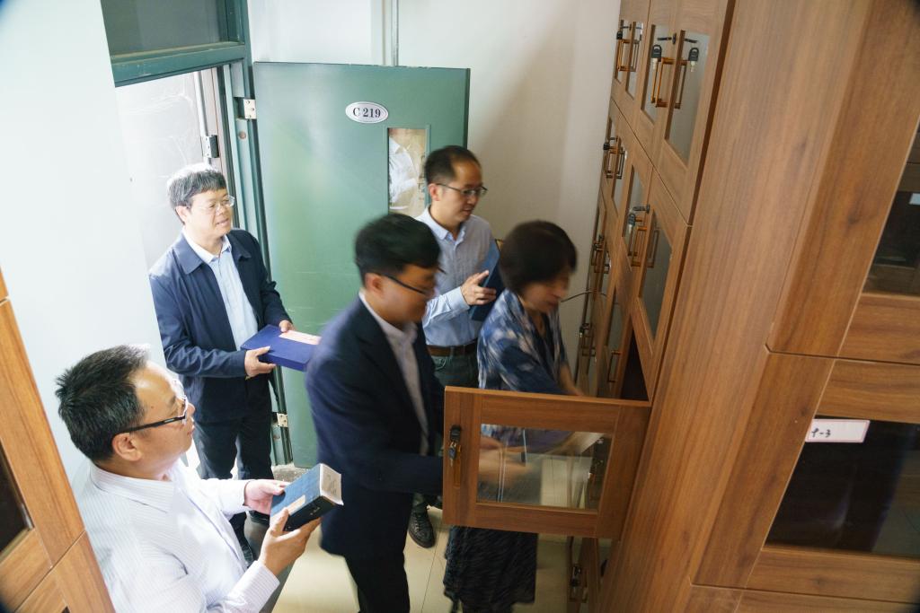 在“讲述我和古籍的故事”环节来自beat365官方网站的5位晒书人李昊、张雅棉、张瑜婧、艾佳、魏捷新依次登台晒出了他们的研读成果,讲述了《孟子》《水经注》《寄园寄所寄》《杜工部集》《读书后》5部院藏经典古籍的整理研究心得,现场文思飞扬、精彩纷呈,他们通过讲述,让古籍说话,让历史说话,让文化说话,真正做到了研学互动和传承文脉。讲述结束后,晒书人与院领导一起来到古籍书库,举行了古籍新书柜正式启用仪式,将5部经典放入古籍书柜中正式入藏。