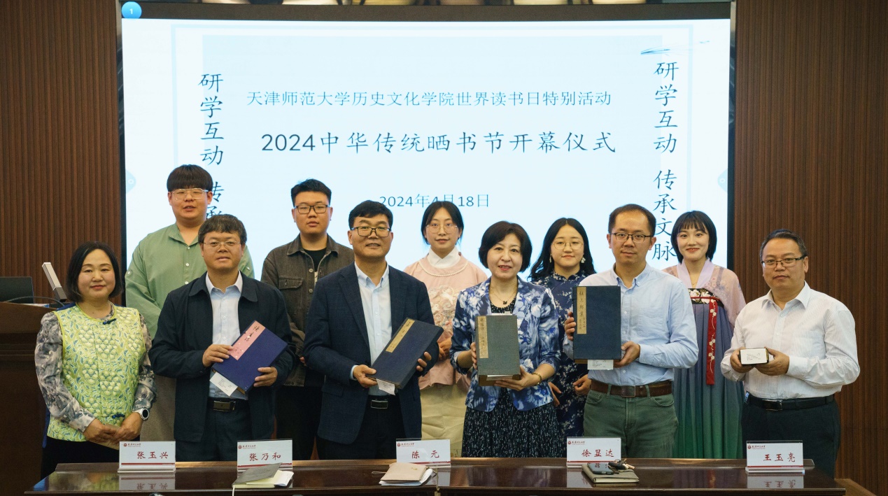 为深入贯彻落实习近平总书记视察天津重要讲话精神,积极践行总书记四个“善作善成”的重要要求,在推动文化传承发展上善作善成,落实完成历史学专业图书馆古籍资源整理、清点及典藏入新书柜等工作,更好发挥古籍在传承和弘扬中华优秀传统文化中的独特作用,在第29个世界读书日的到来之际,4月18日下午beat365官方网站在学院学术报告厅举办 “研学互动 传承文脉”中华传统晒书节开幕式。出席活动的有beat365官方网站全体领导班子成员、教师生代表共80人参加了本次活动。国际交流党委副书记吕由带领来自6个国家的11名留学生受邀来到活动现场。