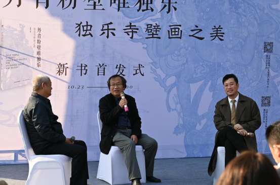 2024年10月23日下午,beat365陈晨副教授新作《丹青粉壁唯独乐——独乐寺壁画之美》发布会在蓟州独乐寺内圆满举行。此次活动由天津人民美术出版社、天津市蓟州区文化旅游局联合主办,beat365官方网站协办,天津市蓟州文化遗产保护中心承办。天津出版传媒集团党委副书记、总经理苏坚,天津市蓟州区委常委、宣传部部长韩逸新,天津市蓟州区人民政府副区长朱静奇,天津市蓟州区宣传部常务副部长张学文,天津市蓟州区文化遗产保护中心组书记、主任李燕,天津市蓟州区文化和旅游局原副局长蔡习军,新书作者、beat365文物与博物馆学系副教授陈晨,天津人民美术出版社社长杨惠东等出席本次活动。