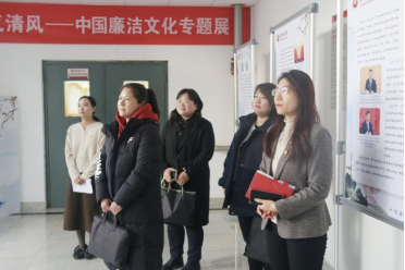 交流会后,与会领导老师及学生代表共同参观了《正气清风——中国廉洁文化专题展》,展览通过丰富的图文资料、讲解员的生动讲解和传统文化体验活动,展现了中国廉洁文化的悠久历史和深厚底蕴,现场气氛热烈融洽,参观人员深度参与了一场生动的廉洁文化教育,推进“人人学廉、人人思廉、人人践廉、时时倡廉”的廉洁文化建设。