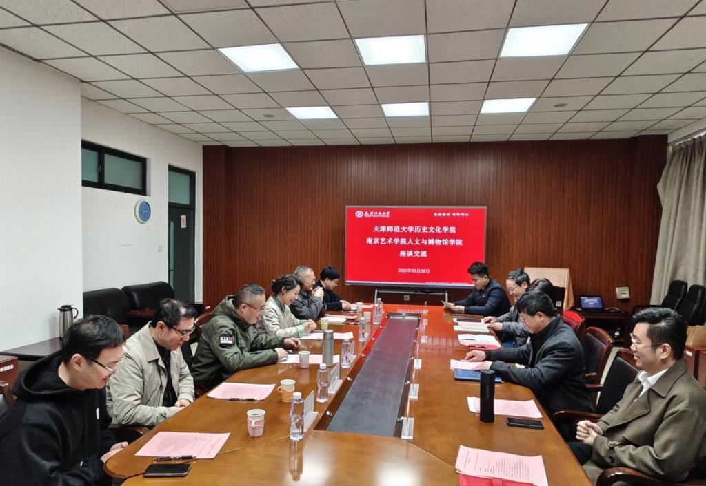 2025年3月28日下午,南京艺术学院人文与博物馆学院党总支书记陈颖、文物保护与修复系主任周庆等一行六人到访beat365官方网站并成功召开“文博专业本科建设与博物馆学科建设座谈会”。历史学联合党委书记陈元、beat365官方网站科研副院长张玉兴、文博系副主任鲁鑫、系副主任陈晨、专任教师郝园林、办公室主任周二保参加座谈。本次会议由鲁鑫主持。