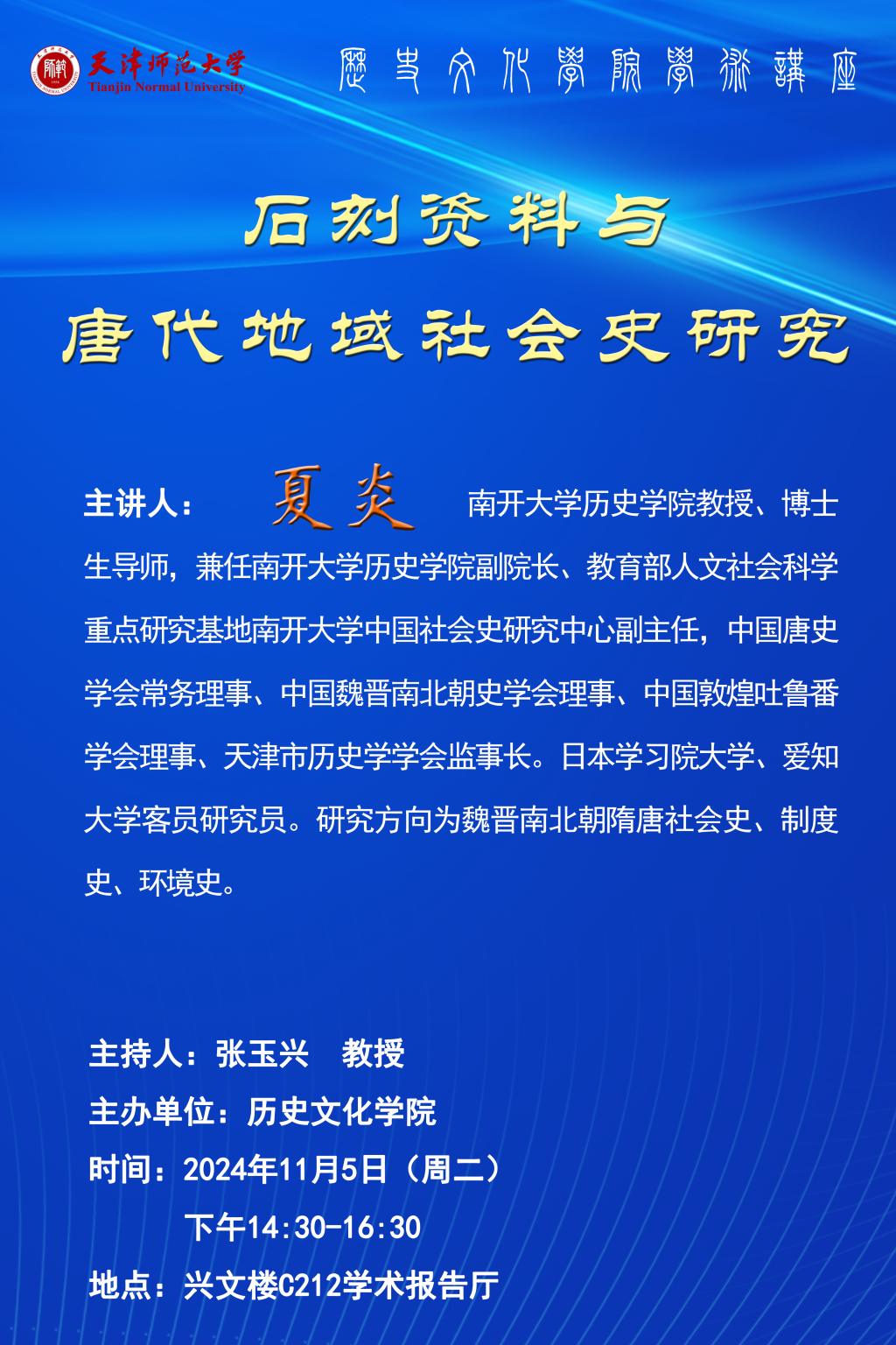 2024年11月5日,夏炎教授将为师生带来题为《石刻资料与唐代地域社会史研究》的学术讲座,详情见海报。