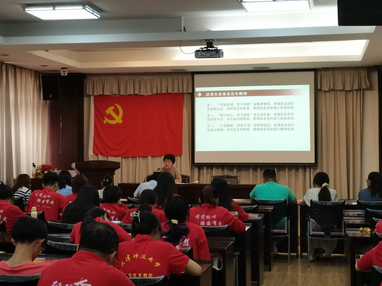党委书记刘殿芬同志以《做传承和弘扬伟大建党精神的坚定践行者和时代传人》为题向参会党员讲授七一专题党课,她以阐述伟大建党精神的深刻内涵为切入点,以学院同学的事迹为范例,激励广大学生党员严格要求自己,积极自查自省,做到有总结、有反省、有更正、有思考;同时认真学习贯彻习近平新时代中国特色社会主义思想,大力弘扬伟大建党精神,始终保持“赶考”的清醒,以永不懈怠的精神状态、一往无前的奋斗姿态,做好新时代的答卷人,走好新时代的长征路,走在前头,干在前头,发挥历史青年的青春力量,为祖国建设添砖加瓦。