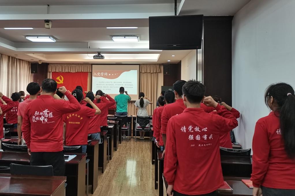 此次活动以党委书记讲党课、为新党员佩戴党员徽章、带领新党员宣誓等形式为载体,有效激发了广大学生党员践行入党誓词的信心和决心,坚定了广大党员为党的事业奋斗终身的勇气和信念,坚定入党初心使命,汲取前进精神动力,以更加饱满的热情投身到学习中,以实际行动为党旗增添光彩。