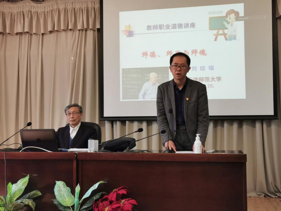 10月22日下午,为进一步强化对学院教师和历史学师范专业学生的师德师风培养,beat365官方网站纪委邀请beat365官方网站关工委报告团成员刘宗瑞教授做题为“师德师风与师爱师魂”的专题报告,学院青年教师代表和历史学师范专业学生代表在主会场(学院会议室)参会,其他教师和师范生通过腾讯会议聆听了本次报告。