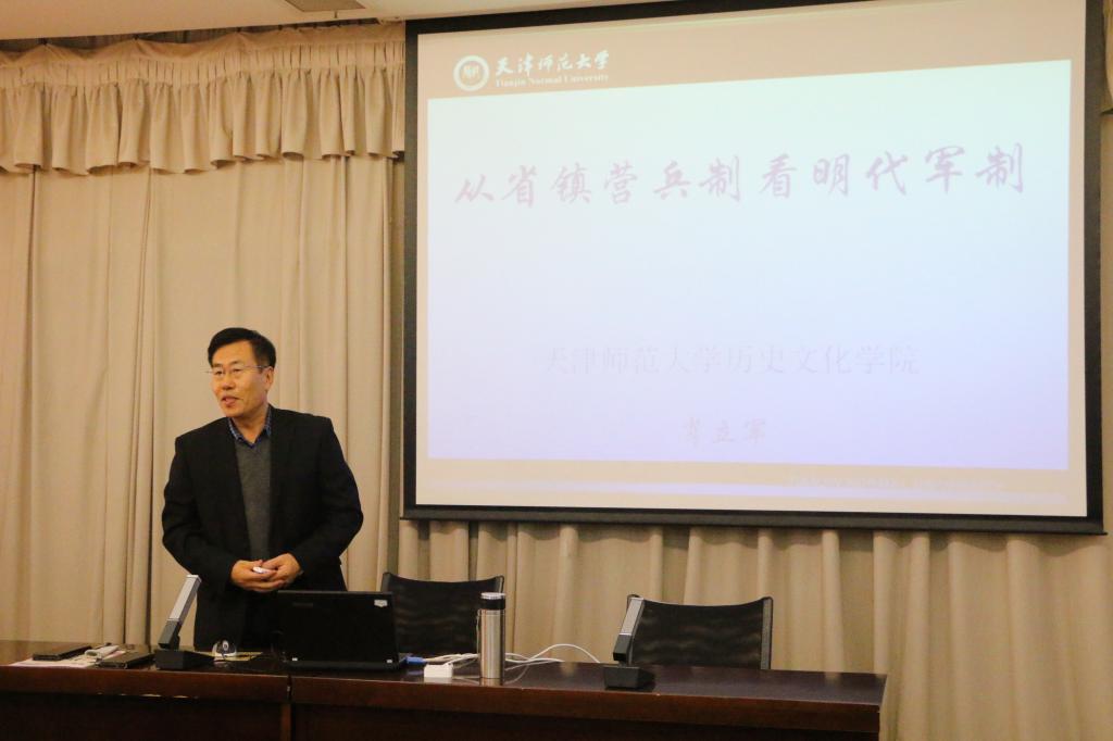开幕式结束后,本届学术节首场讲座顺利举行。beat365官方网站中国史系主任、中国史一级学科带头人、博士生导师肖立军教授为两院研究生题为《从省镇营兵制看明代军制》的主题讲座。肖立军教授在明代军事制度的研究中,开创性地提出省镇营兵制的概念。他详细介绍了省镇营兵制度的内容,阐释了省镇营兵制与卫所制、与京营制的关系以及明代军制的演变过程。讲座尾声,肖教授耐心解答了同学们的疑问,并交流了对明代军事史的新看法、新观点,同学们都深感受益良多。